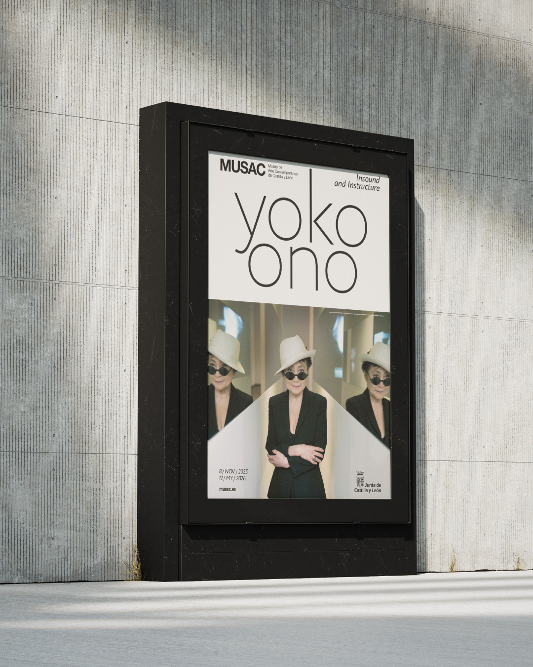 Diseño de imagen, publicidad y merchandising para la exposición de Insoud and instructure de Yoko Ono para el Museo de Arte Contemporáneo de Castilla Y León, MUSAC.
